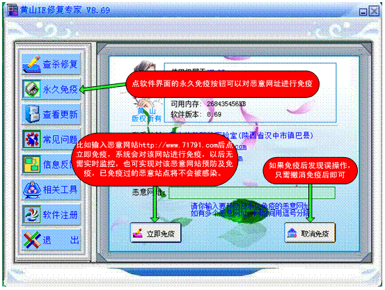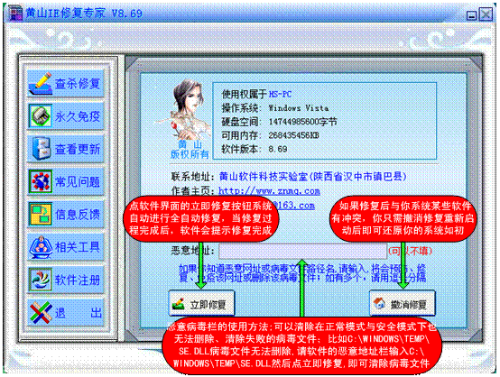 《黄山IE修复专家》采用VC6.0编写,反浏览器劫持病毒,超越IE修复极限,立足永久修复的治本之点。同时具备IE修复、杀各种以驱动服务方式运行的木马病毒、清除各类间谍广告程序、各种流行病毒及系统救援于一身。修复易死灰复燃顽固性、古怪性恶意代码所破坏的不能完全彻底修复IE,专门清除间隔一段时间自动弹出恶意网页、多开几次IE及重起系统后又会被反复篡改、挥之不去、除之不尽的奇怪恶意病毒。特点:集预防、修复、免疫、救援四大功能于一身,拥有一套非Windows (非微软)自身独立的系统API库,几乎可使绝大部分在Windows下运行的对抗性、隐藏性病毒无效(包括内核驱动级木马、ROOTKIT、甚至Windows自身),真正做到查得出、杀得掉!