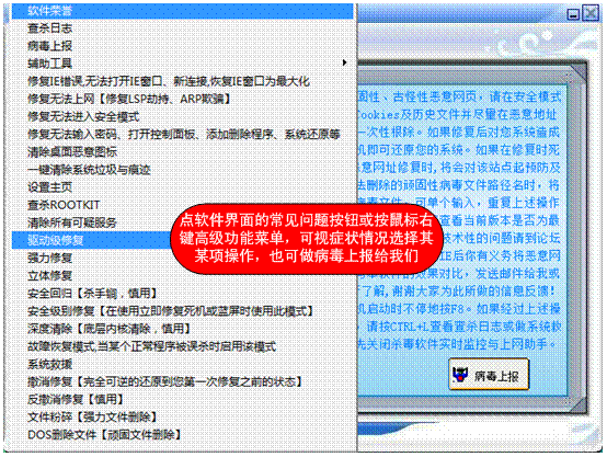 三、查看更新功能包含了软件最新版本信息及一些顽固病毒的清除方法。